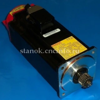 Сервомоторы переменного тока Fanuc серия α состоят из ряда сервомоторов, предназначенных для приведения в движение осей подачи станков. Роторы сервомоторов обладают малой инерцией, при сохранении максимального выходного крутящего момента, что дает хорошие характеристики ускорения. Применение ферритового магнита, в сочетании с оптимизированной механикой конструкции, делает сервомотор легким и компактным. Полюса двигателей выполнены по уникальным формам и минимизируют пульсации крутящего момента. В результате двигатели обладают плавным вращением. Управление сервомотором осуществляется с помощью сервоусилителей Fanuc, напряжением питания 200-230 В переменного тока.